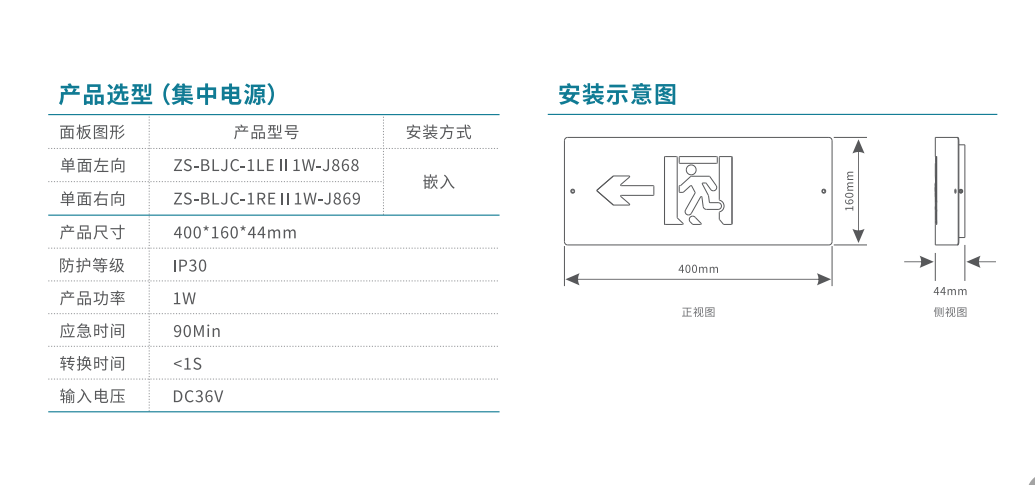 軌道交通-弧形款-單面右向應急標志燈 | ZS-BLJC-1REⅡ1W-J869 | 嵌入