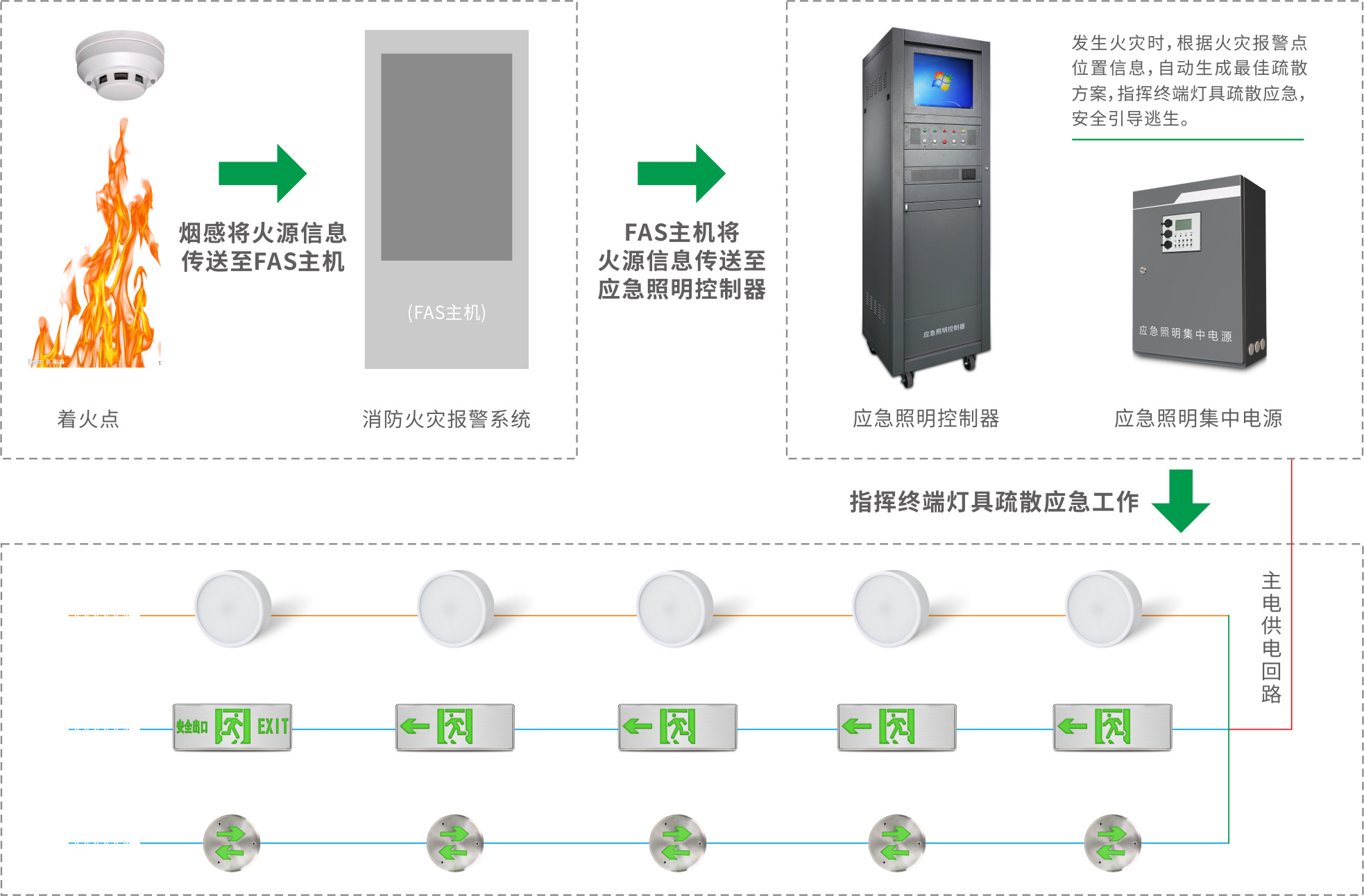 “智能疏散系統(tǒng)”是由智能疏散系統(tǒng)控制主機、消防應急電源、消防應急標志燈具、消防火災報警主機,火災探測器等多種設備組成的一套智能消防疏散系統(tǒng)。該系統(tǒng)具有人機交互界面,可對應急標志燈具實時巡檢、并與報警主機系統(tǒng)聯(lián)動、在有火災發(fā)生時,根據(jù)起火位置智能選擇最佳逃生路線進行疏散指示。 當發(fā)生火情時,系統(tǒng)能根據(jù)著火點位置,變換指示方向,引導群眾向遠離著火點的方向撤離。①當著火點靠近樓道出口位置時,該出口以上樓層疏散口,必須顯示關(guān)閉狀態(tài),以便群眾避開臨近著火點樓層的出口疏散。②著火點以下樓層群眾可向任意出口疏散,以達到盡快撤離的目的。 深圳市中智盛安安全技術(shù)有限公司成立于2011年,是集研發(fā)、制造、銷售、服務為一體的消防應急照明和疏散指示系統(tǒng)解決方案提供商,智能疏散十大品牌,國家級高新技術(shù)企業(yè)。公司擁有多條全自動生產(chǎn)線和試驗設備,年產(chǎn)各類型消防燈具(智能型及普通型)500萬余只。生產(chǎn)中心采用無鉛生產(chǎn)工藝,具有消防應急照明和疏散指示系統(tǒng)生產(chǎn)車間,生產(chǎn)檢測設備均達到國內(nèi)領先水平,生產(chǎn)過程將嚴格執(zhí)行IS09001生產(chǎn)管理體系,為公司產(chǎn)品的產(chǎn)業(yè)化、規(guī)模化提供了保障。 中智盛安產(chǎn)品和服務已在:機場、高鐵車站、地鐵車站、隧道管廊、會展中心、商業(yè)廣場、五星酒店、寫字樓大廈、城市地標、中小學校等場所大規(guī)模使用。 (文中項目介紹、圖片素材來源于網(wǎng)絡,如有侵權(quán)請聯(lián)系刪除)