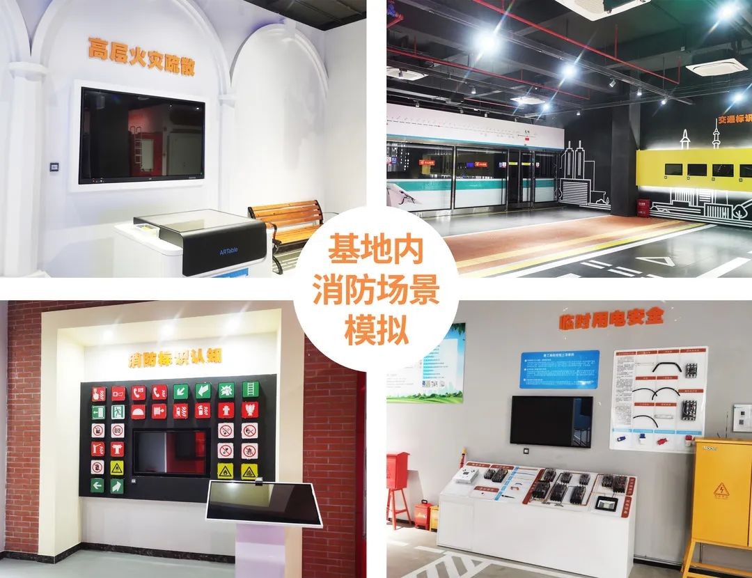 該基地內設有生產安全實訓、消防場景等六大體驗區,覆蓋消防安全、校園安全等九大行業領域安全主題,涵蓋1380余項安全知識點。不同于傳統的安全消防基地,該基地通過實景搭設環境,運用VR、AR、體感等高科技打造展項,營造出沉浸式體驗氛圍。不僅所設項目兼具互動性與體驗性,還配備專業人員隨行講解,讓參觀者能邊玩邊學安全知識。