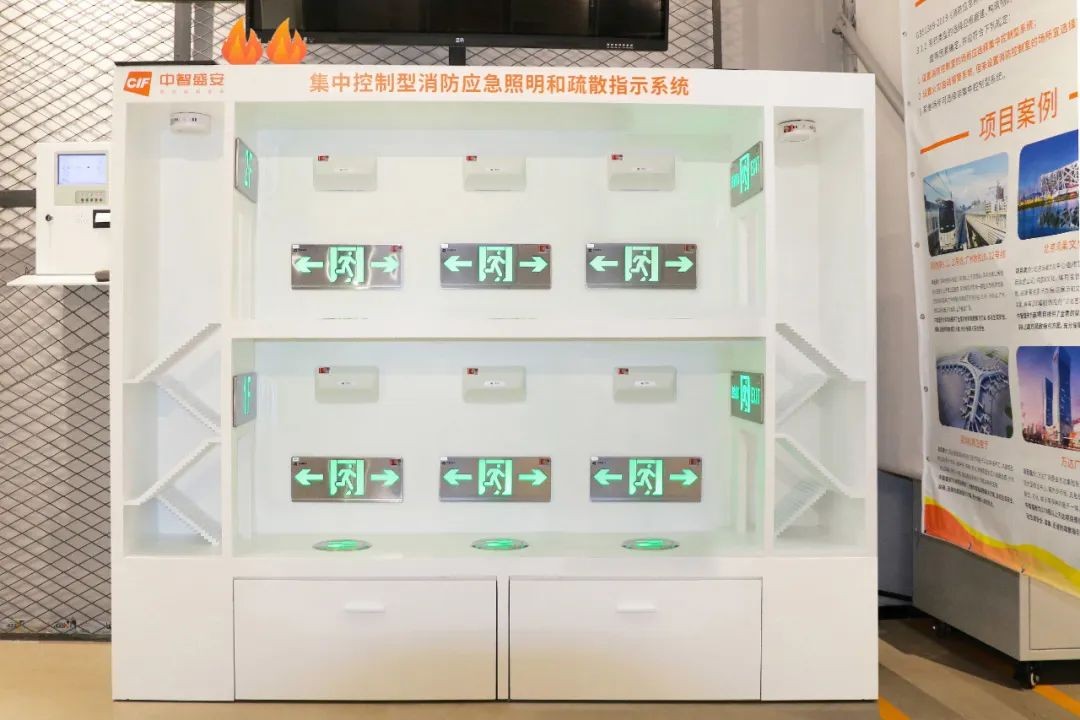中智盛安廣受市場認可及用戶好評的CIF-SENSE100消防應急照明和智能疏散指示系統,也在展示體驗之列。他們將系統及配套產品的完整模型安置在體驗區供大眾了解參觀。