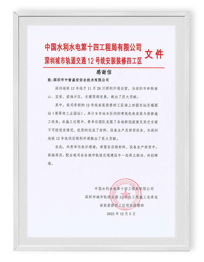 中智盛安獲“深圳地鐵、萬達(dá)廣場認(rèn)可并表揚”